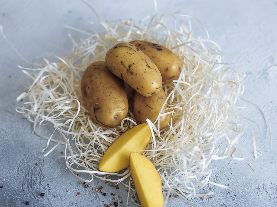 Craft paper and wood wool form a new interesting product that is used for transporting and laying out vegetables and fruits.